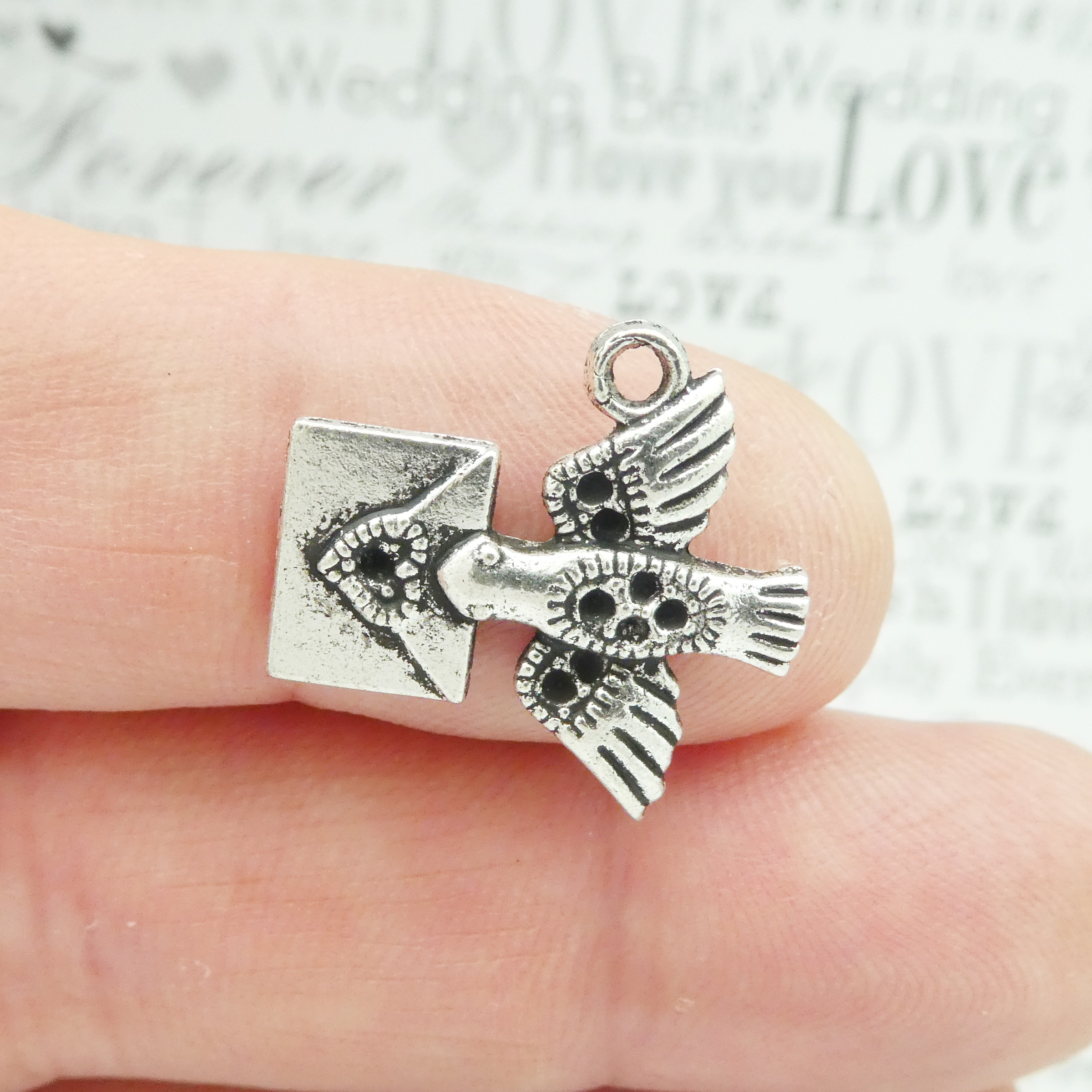 BULK 60 Love Letter Charm with Dove in Silver by TIJC SP0341B