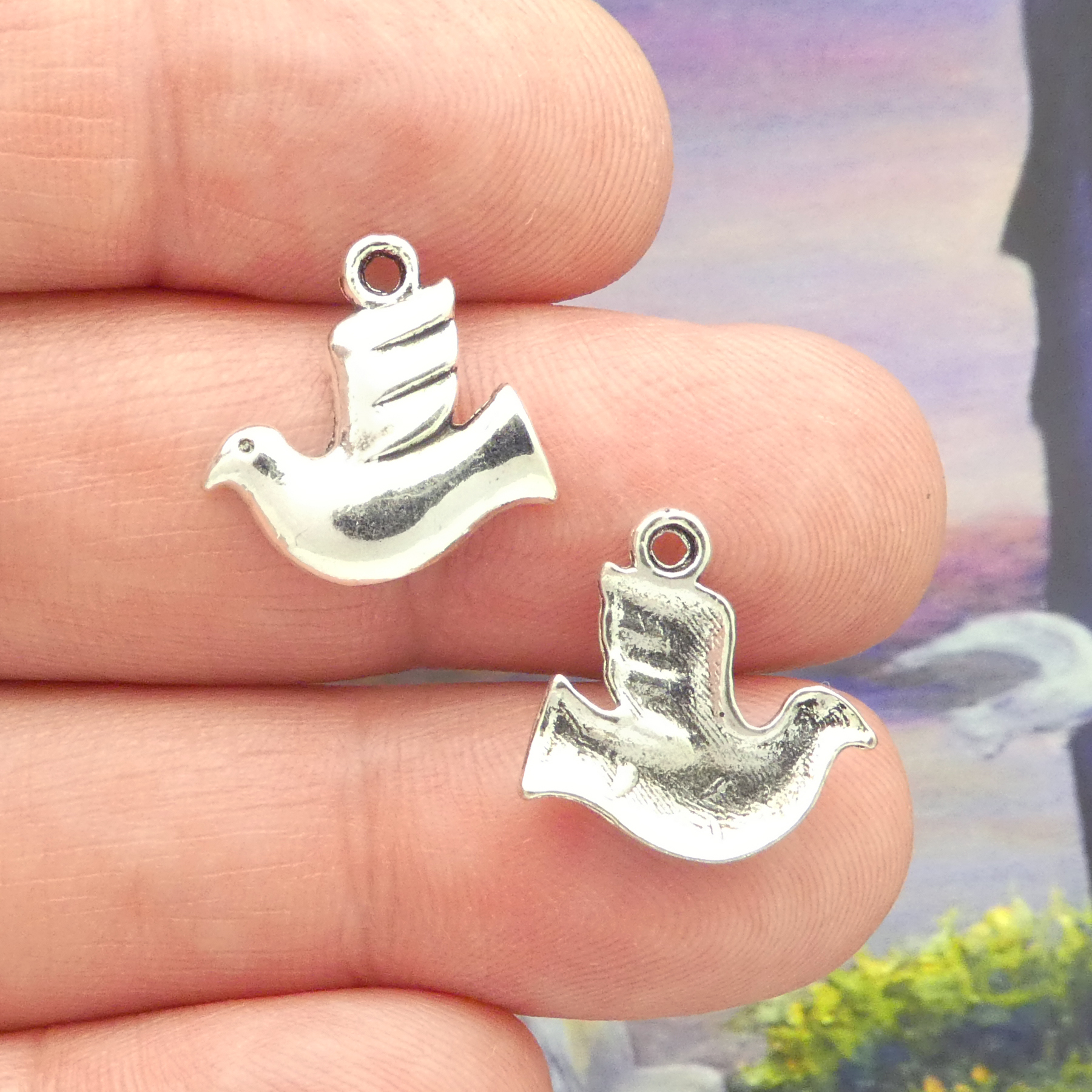 You will receive BULK 60 – Small Simple Dove Peace Charm in Antique Silver Pewter. These charms are a quality Silver Pewter for all your jewelry and crafting projects!