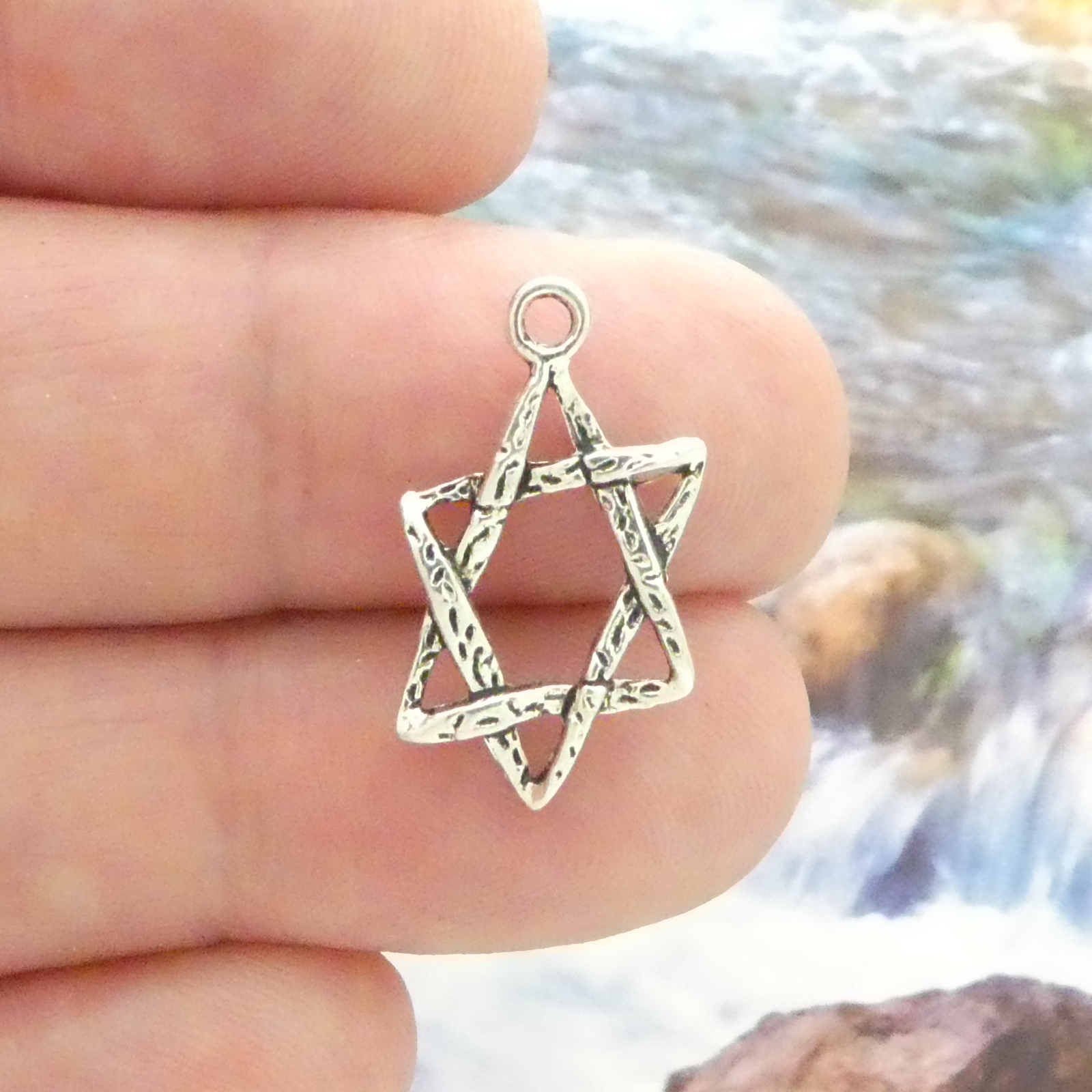 You will receive BULK 60 – Double Sided Barked Finish Silver Jewish Charm in Antique Silver Pewter 23x16mm by TIJC. These charms are a quality Silver Pewter for all your jewelry and crafting projects!