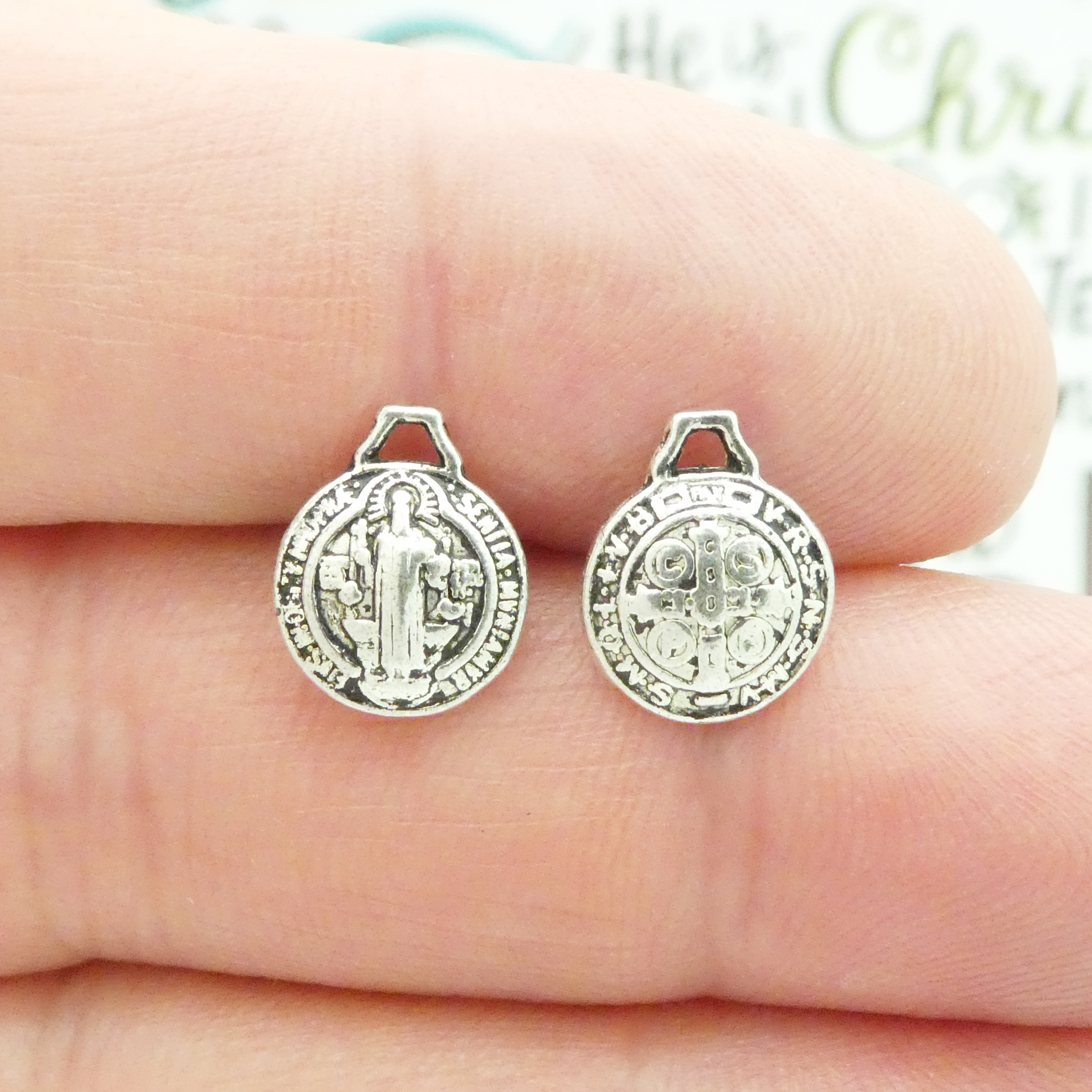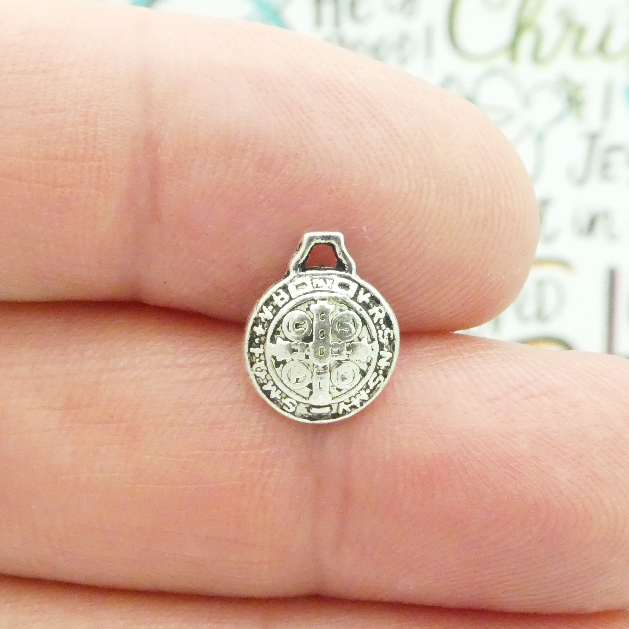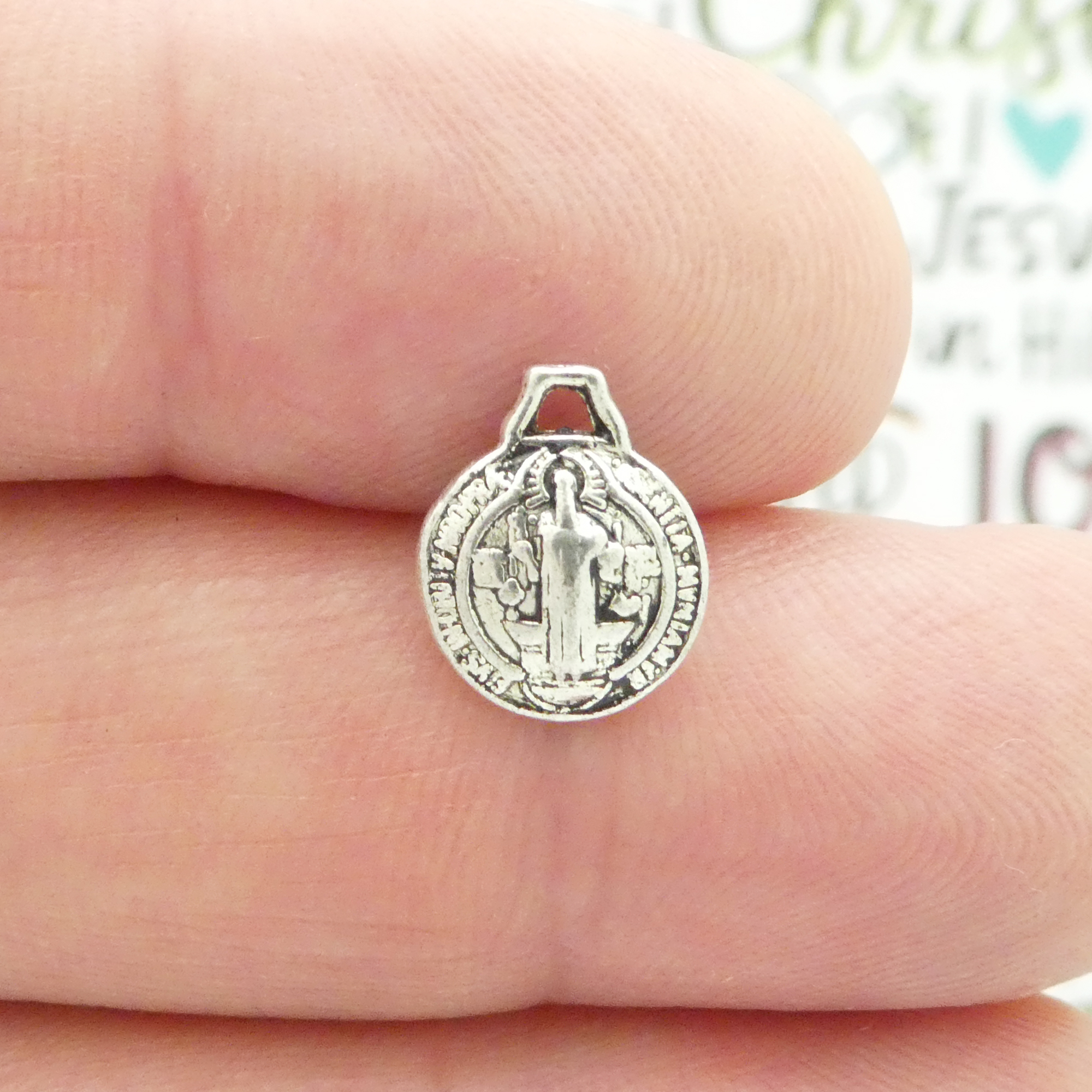 You will receive BULK 60 – Puffed Silver Tiny St Benedict Medal. These charms are a quality Silver Pewter for all your jewelry and crafting projects!