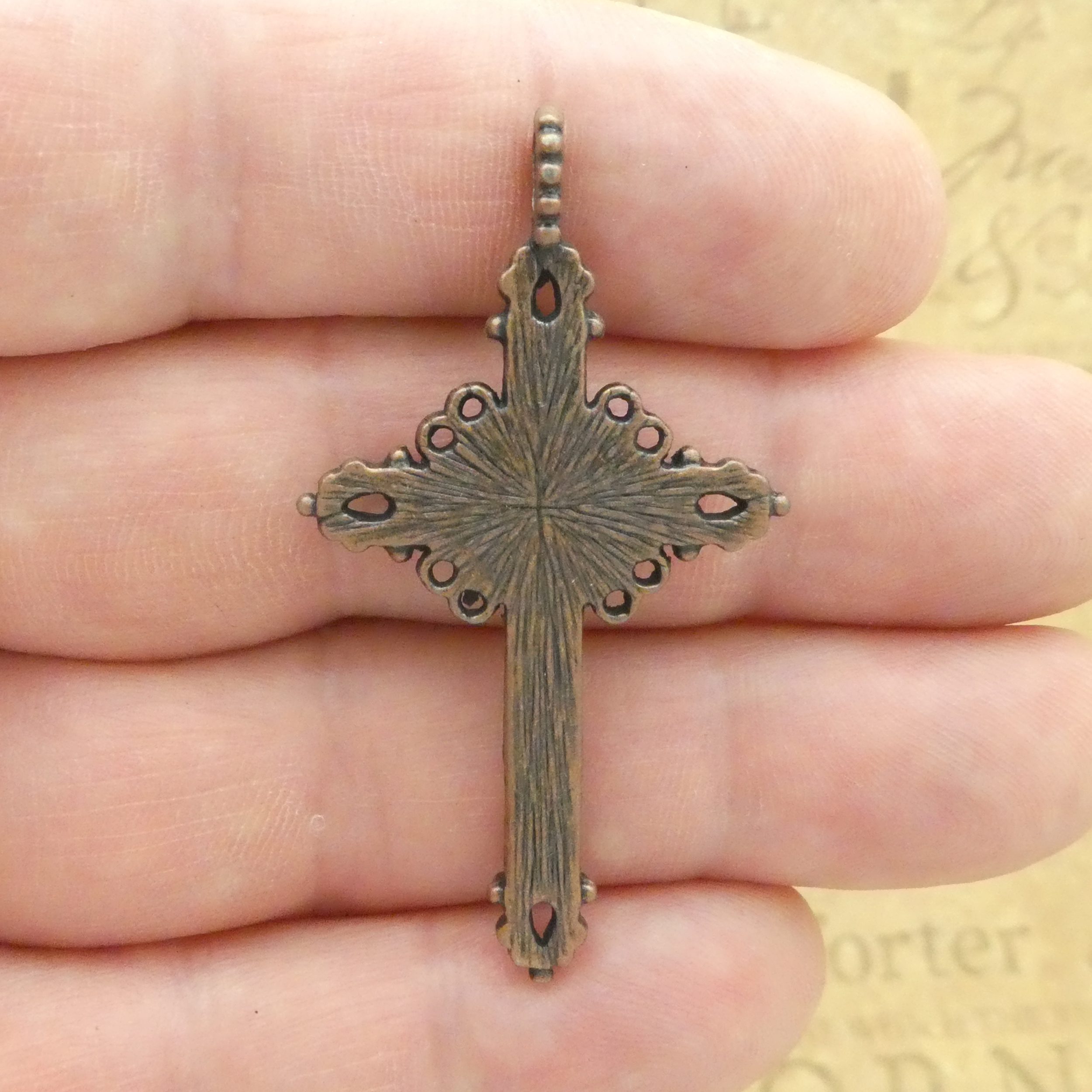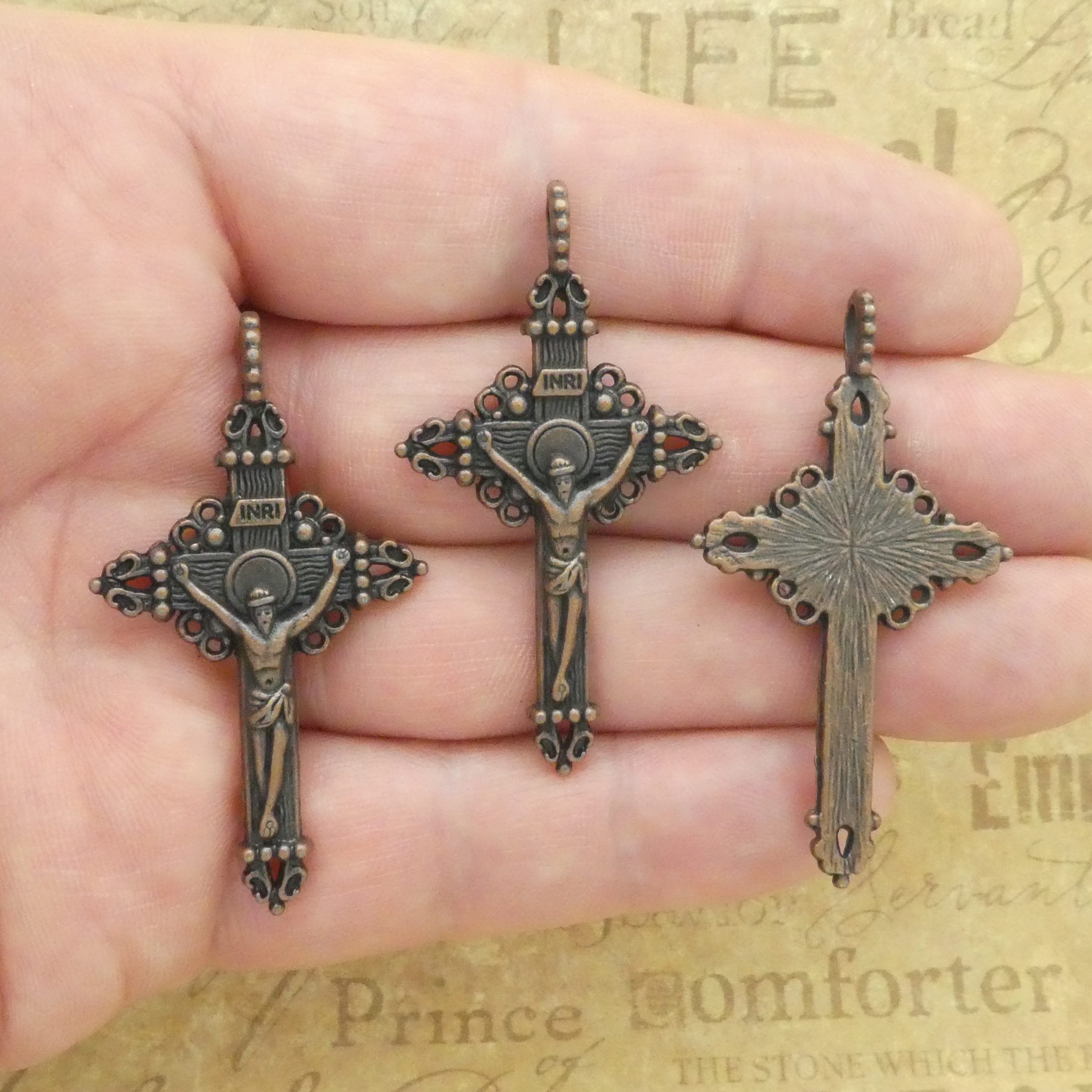 You will receive BULK 8 – Catholic Rosary Bronze Copper Cross Crucifix Charms in Antique Pewter! Use this Antique Silver Pewter Cross for Rosary Parts in making a Catholic Rosary. These charms are a quality Pewter for all your jewelry and crafting projects!
