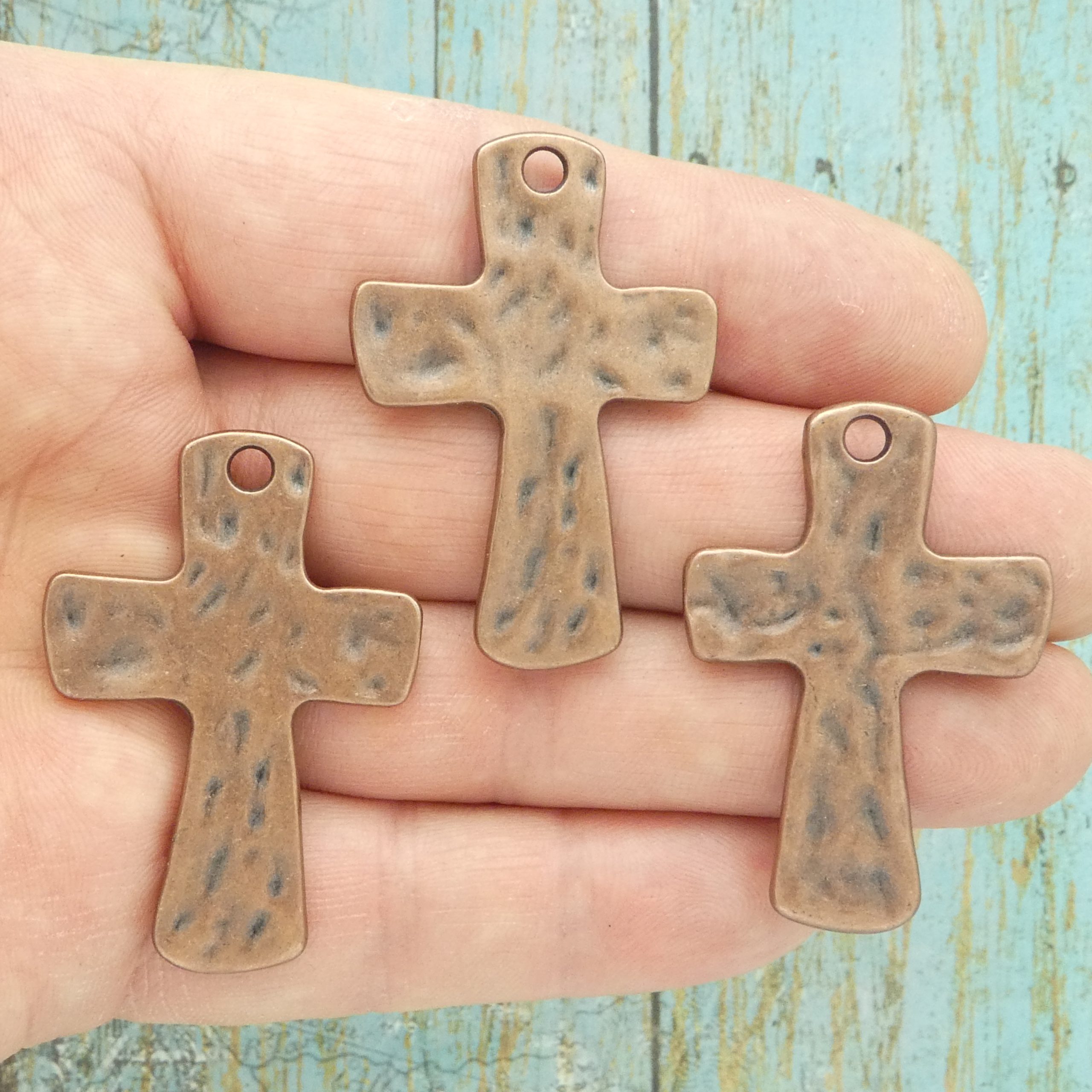 You will receive BULK 8 – Large Hammered Christian Cross Charm in Antique Copper Pewter. These charms are a quality Pewter for all your jewelry and crafting projects!