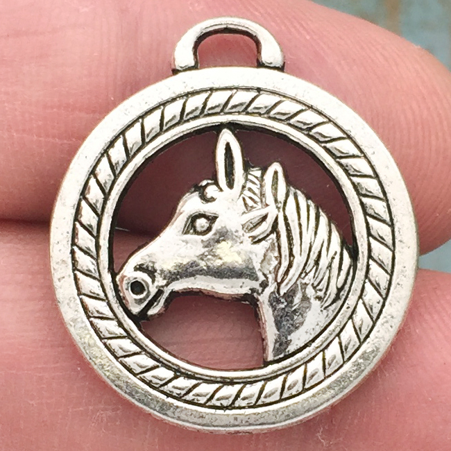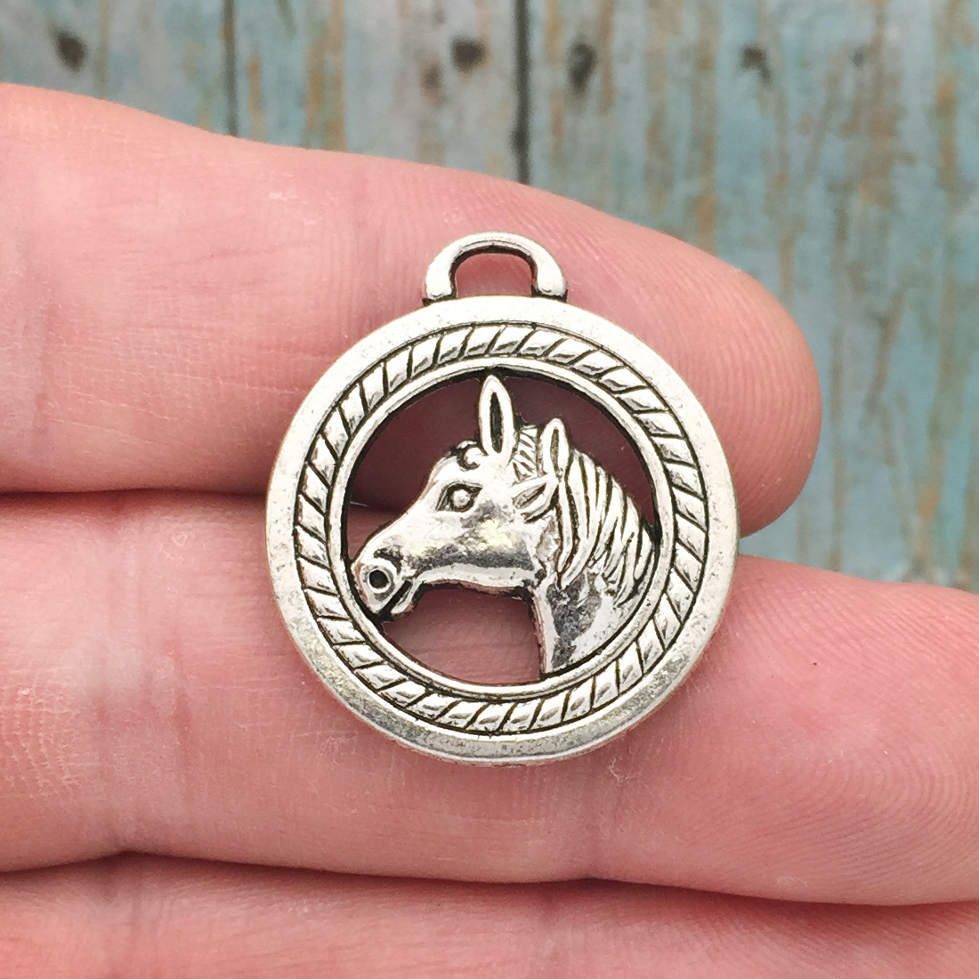 You will receive 8 – Round Head of a Horse Pendant in Silver Pewter by TIJC! These charms are a quality Silver Pewter for all your jewelry and crafting projects!