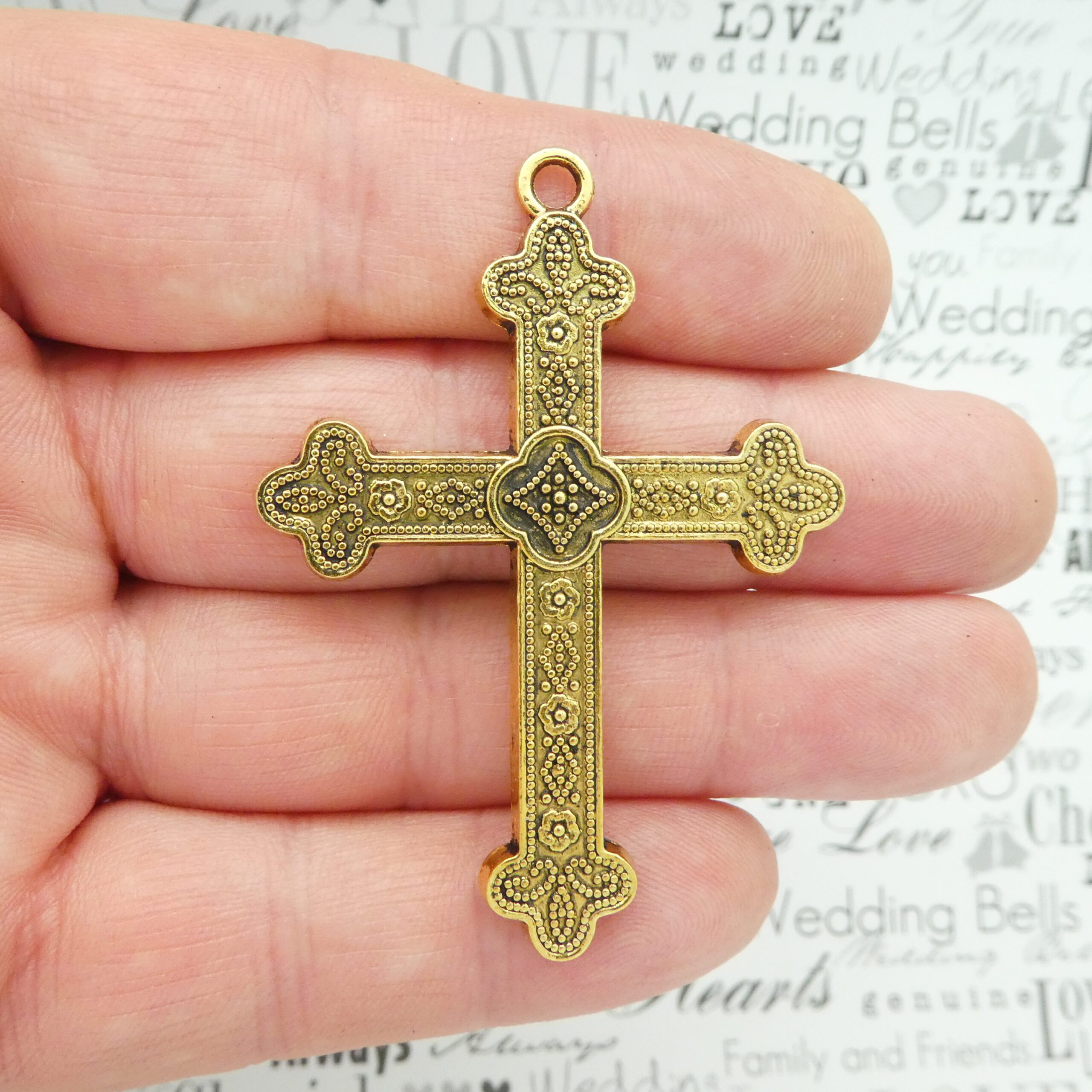You will receive BULK 8 – Orthodox Cross Charms in Antique Gold Pewter by TIJC! These charms are a quality Pewter for all your jewelry and crafting projects!