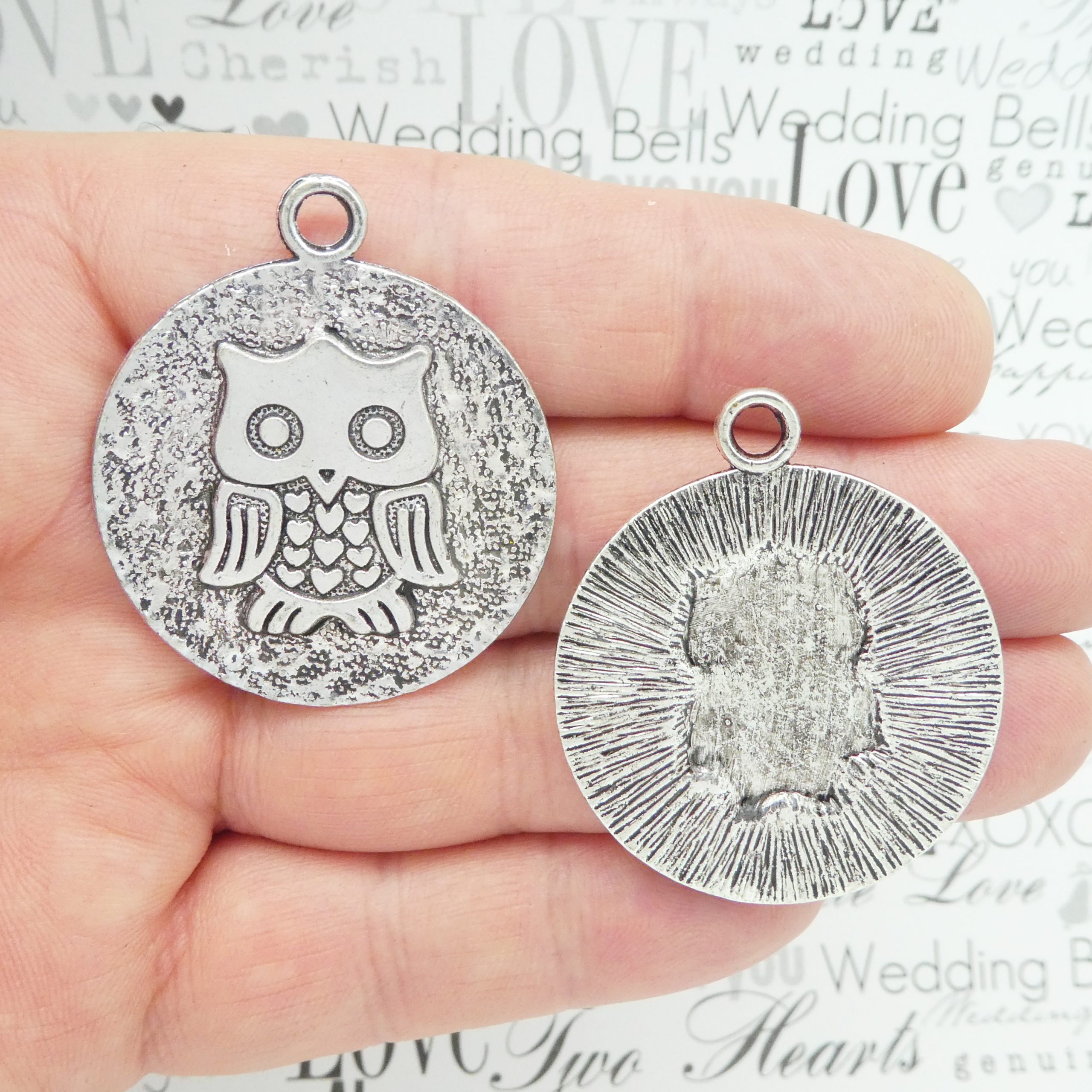 You will receive BULK 8 – Large Owl Charm Pendant in Silver Pewter! These charms are a quality Silver Pewter for all your jewelry and crafting projects!