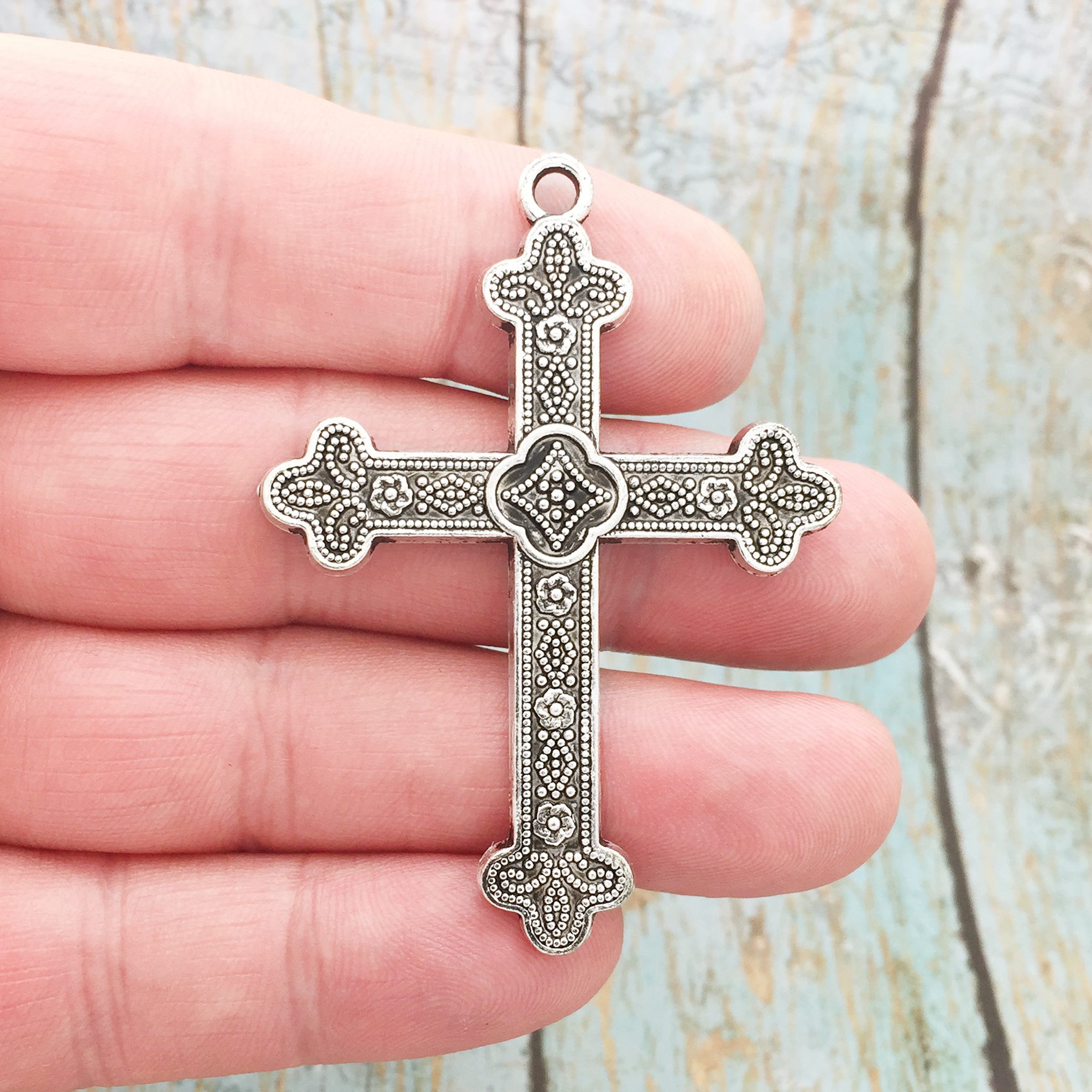 You will receive BULK 8 – Ornate Large Cross Charms in Antique Silver Pewter. These charms are a quality Pewter for all your jewelry and crafting projects!