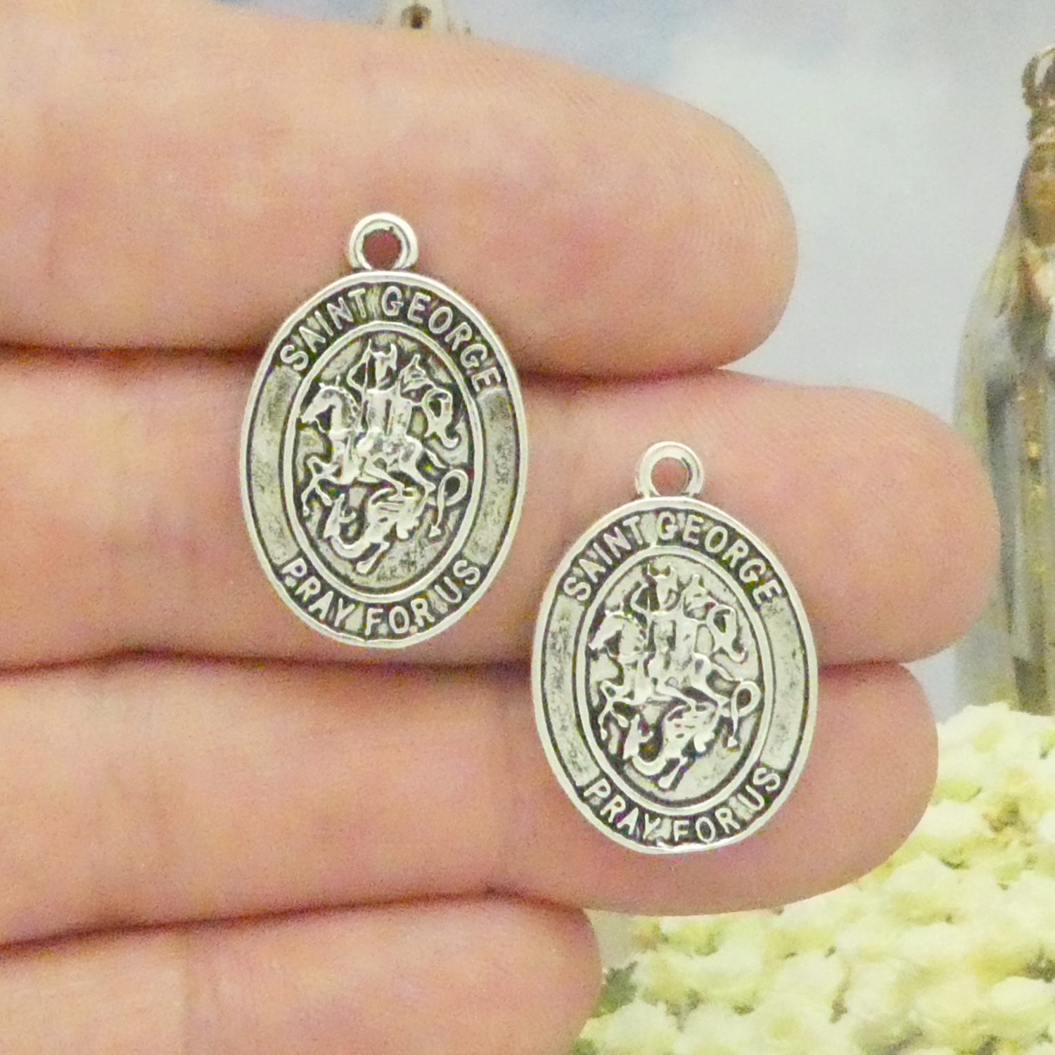 You will receive BULK 8 – Small St George Medal Pendant in Silver Pewter by TIJC. These charms are a quality Pewter for all your jewelry and crafting projects!