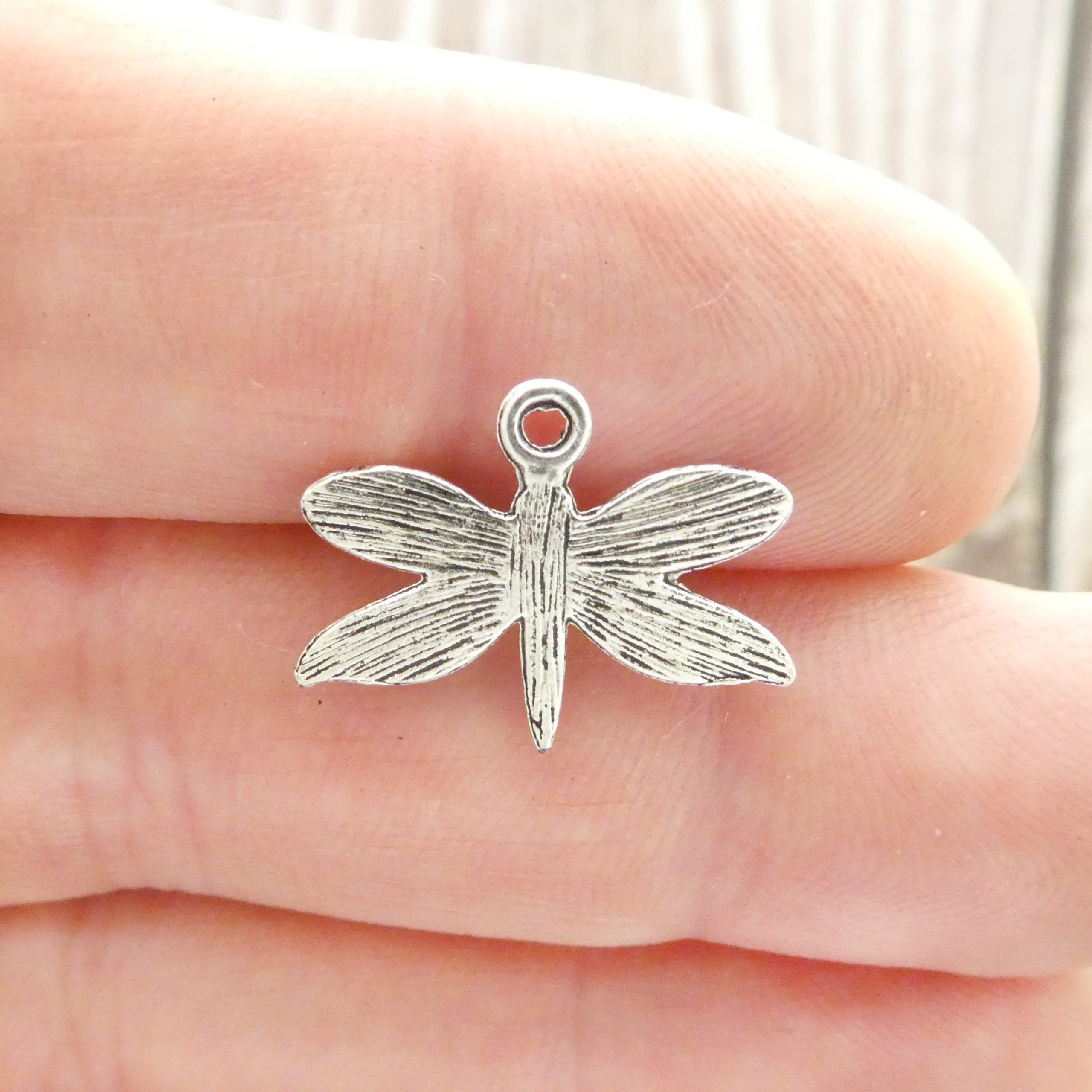 You will receive BULK 80 – Small Dragonfly Bug Charm in Antique Silver Pewter. These charms are a quality Silver Pewter for all your jewelry and crafting projects!