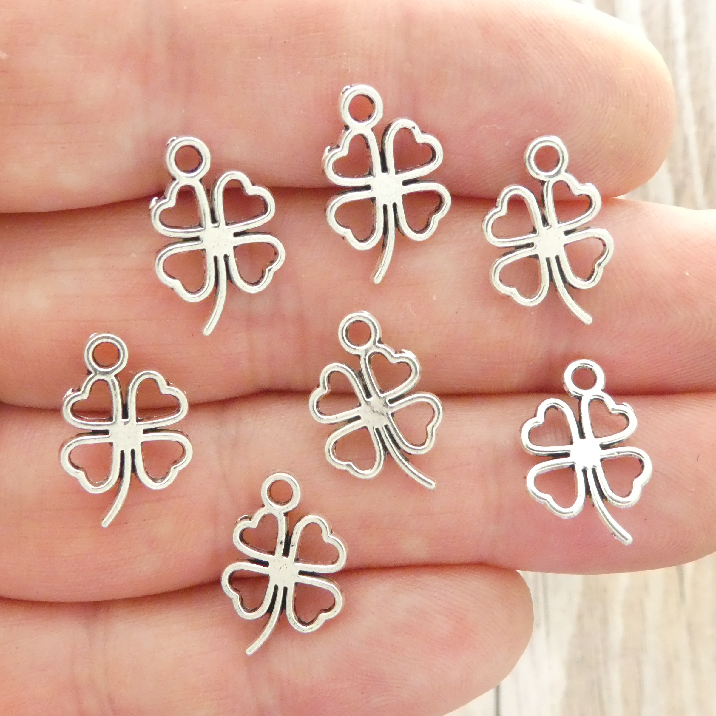 – (80) Silver Four Leaf Clover Good Luck Charm