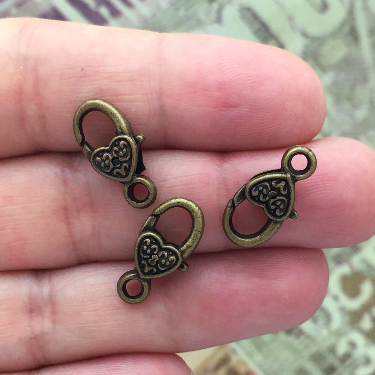 You will receive BULK 9 – Double Sided Heart Lobster Clasp with Ornate Design in Antique Bronze Pewter 18x9mm by TIJC! These charms are a quality Pewter for all your jewelry and crafting projects!