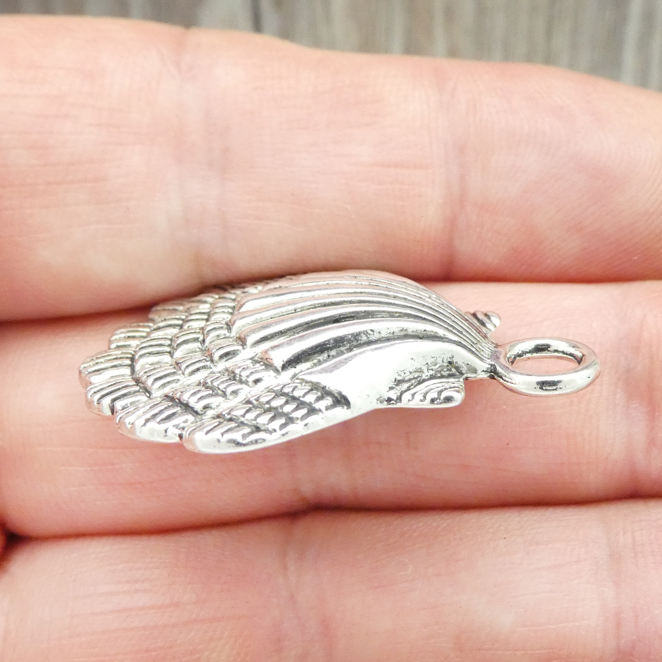 BULK 9 Silver Sea Shell Charm 36x30mm by TIJC SP1203B